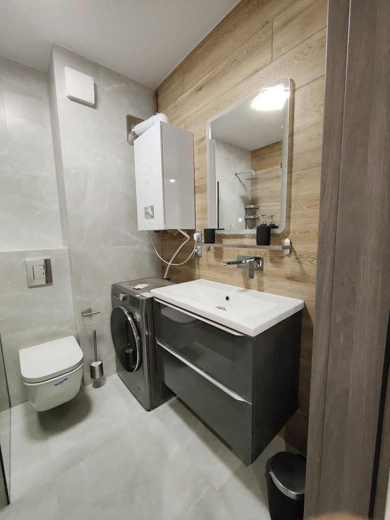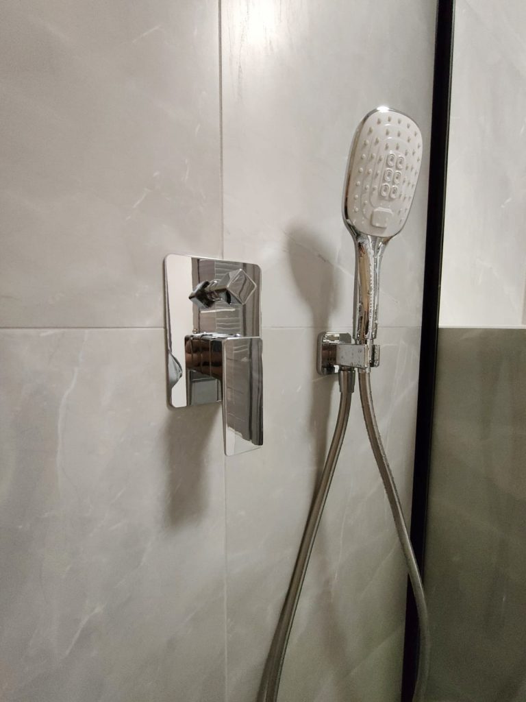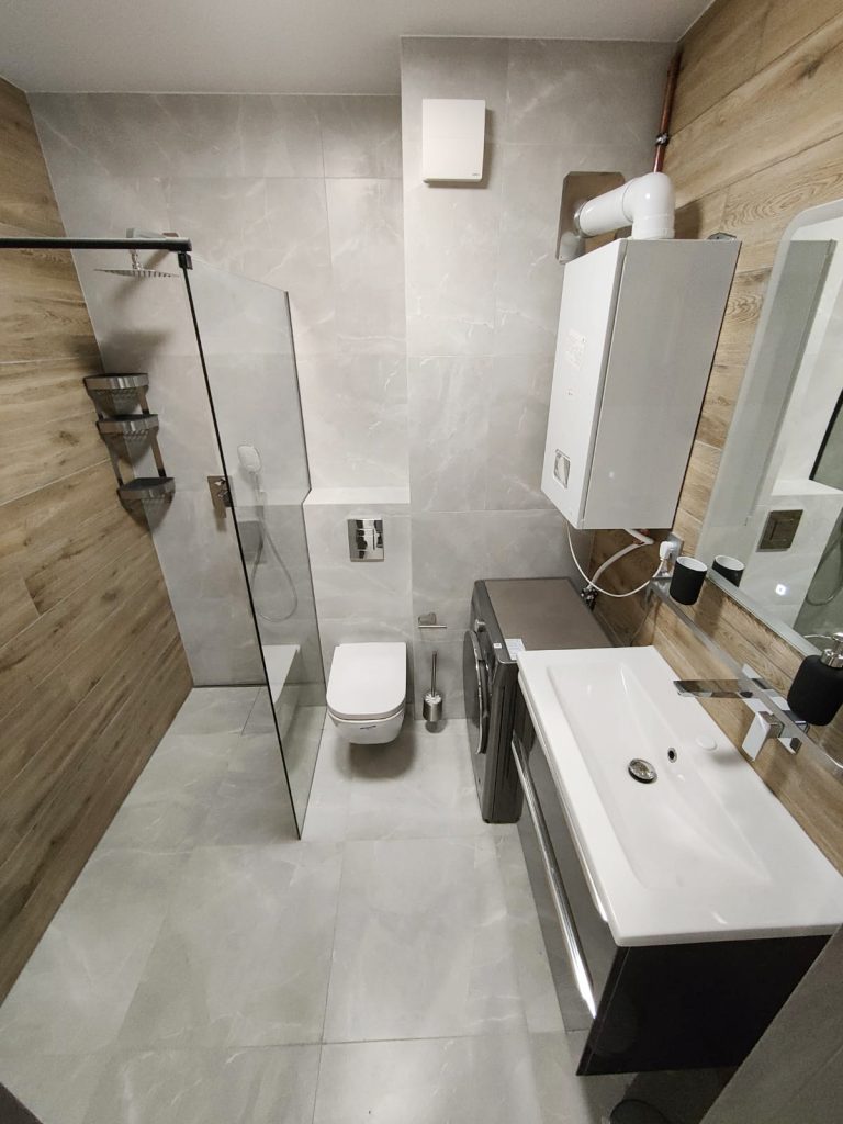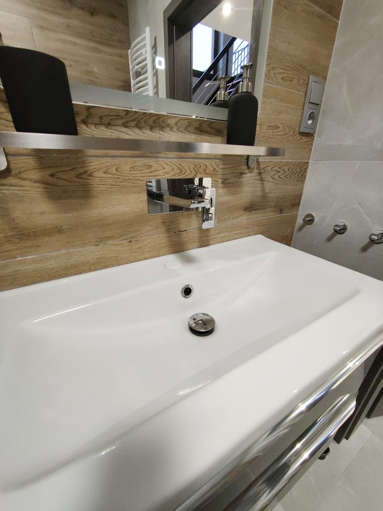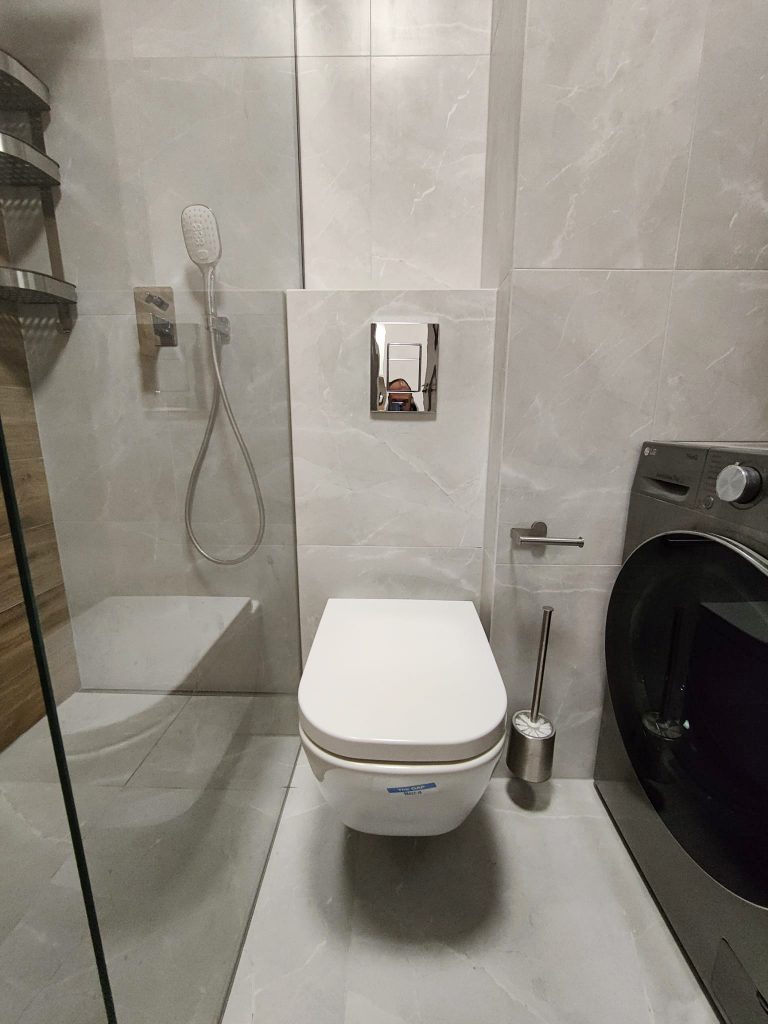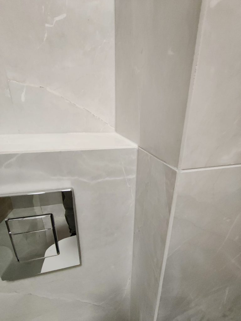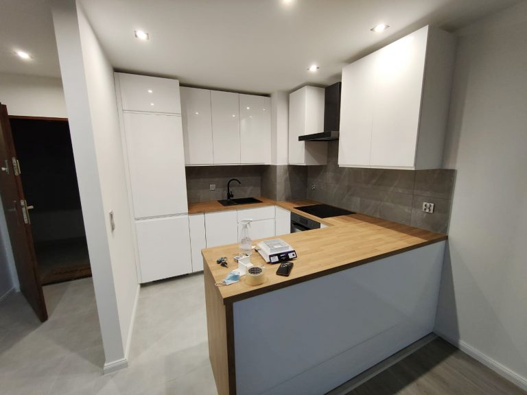 układanie podłogi - łazienka w mieszkaniu Szczecin kuchnia biała z płytkami imitacją betonu