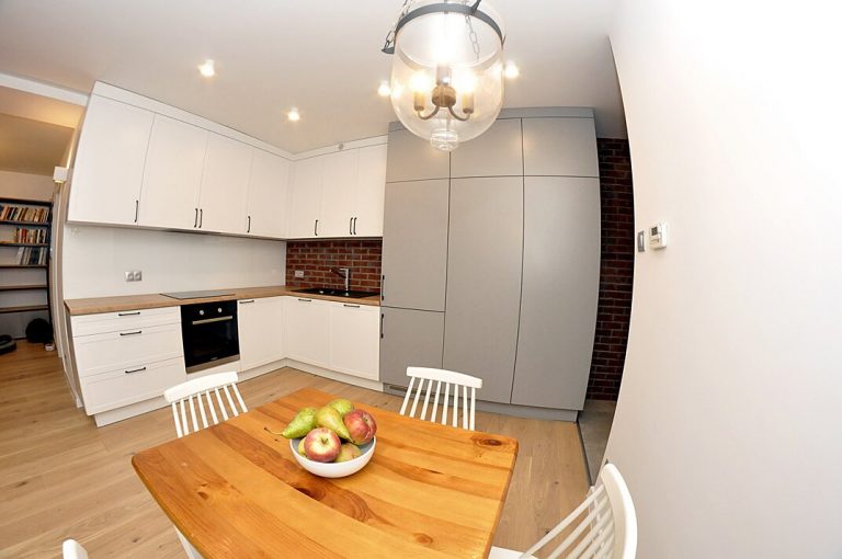 kuchnia - Wykończenie Mieszkań Szczecin panele kuchenne panele w kuchni, montaż ukłądanie, wykończenie wnętrza mieszkania w Szczecinie Wykończenie Mieszkań Szczecin salon - oświetlenia - instalacje elektryczne dekoracja w salonie - cegły na ścianie, panele podłogowe
